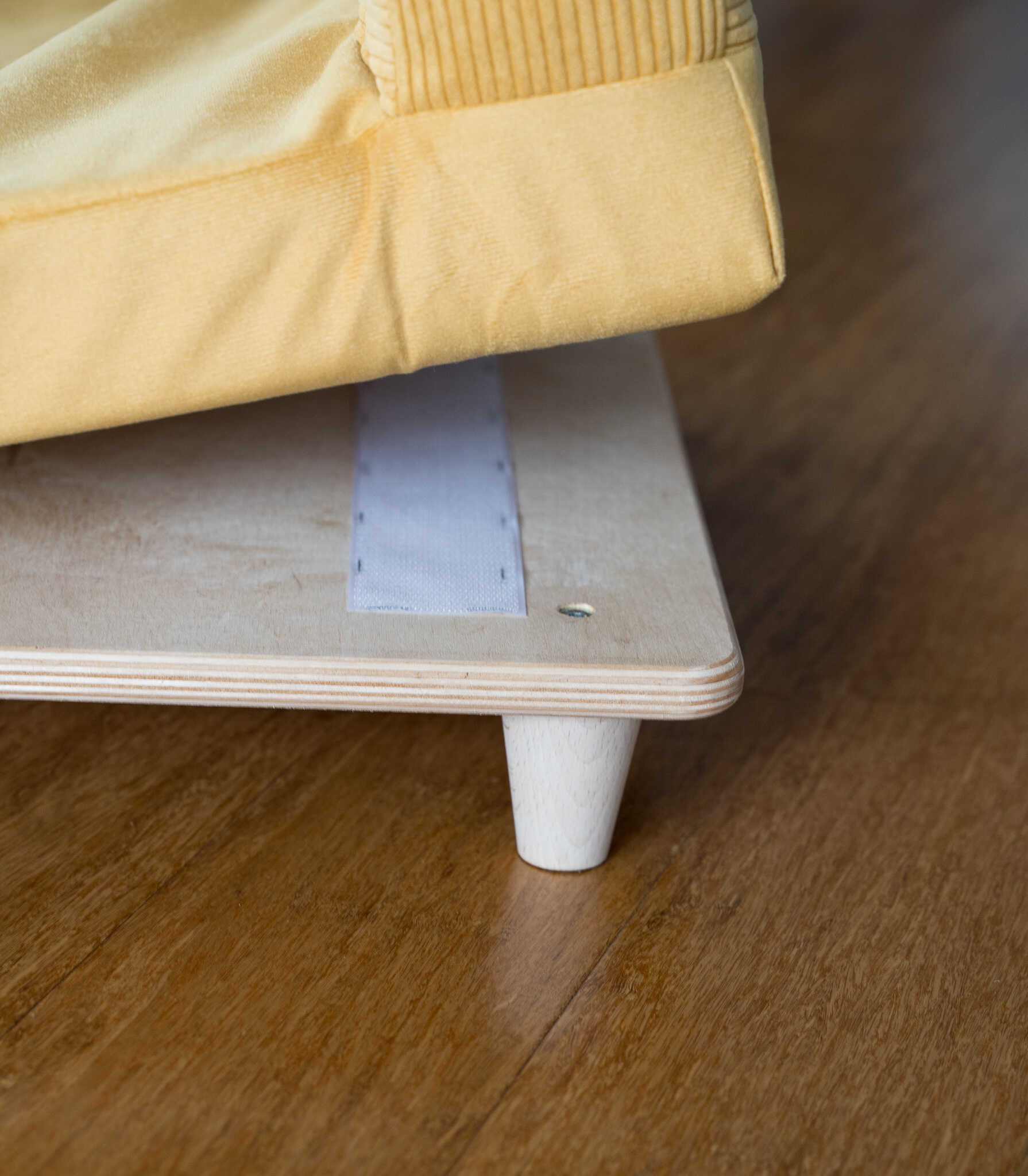 - materiál: březová překližka, bukové nohy, velur, wigofil