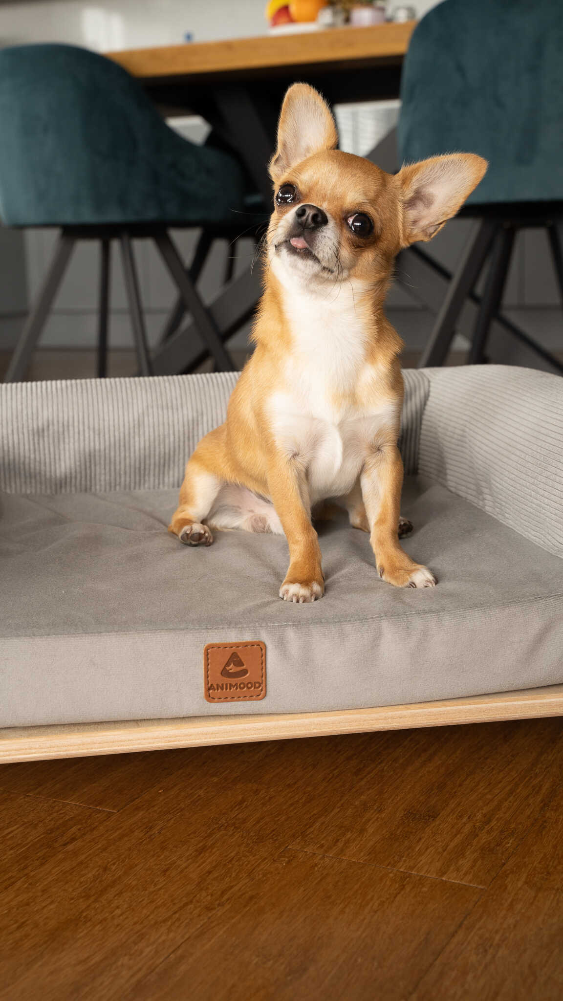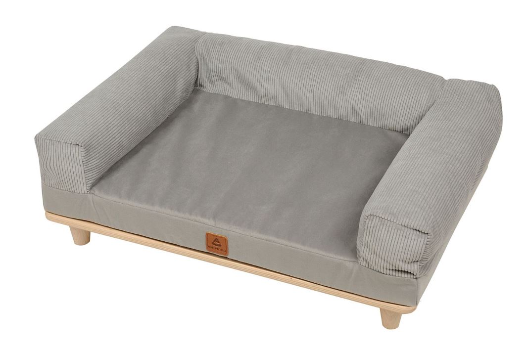 Exkluzivní pelíšek pro psy ve tvaru pohovky SONIA na bukových nohách je stylový kus nábytku, který ochrání vašeho mazlíčka před kontaktem s tvrdou a chladnou zemí. Všechny materiály použité na jeho výrobu splňují normy kvality ISO. Pohovka je ideální pro psy do 50 kg. Pohovka pro psa je vyplněna pružnou polyuretanovou pěnou odolnou proti deformaci. Potah je vyroben z elegantního, pevného veluru a manšestru. Díky modernímu designu se pohovka stane krásným stylovým doplňkem každé psí domácnosti.