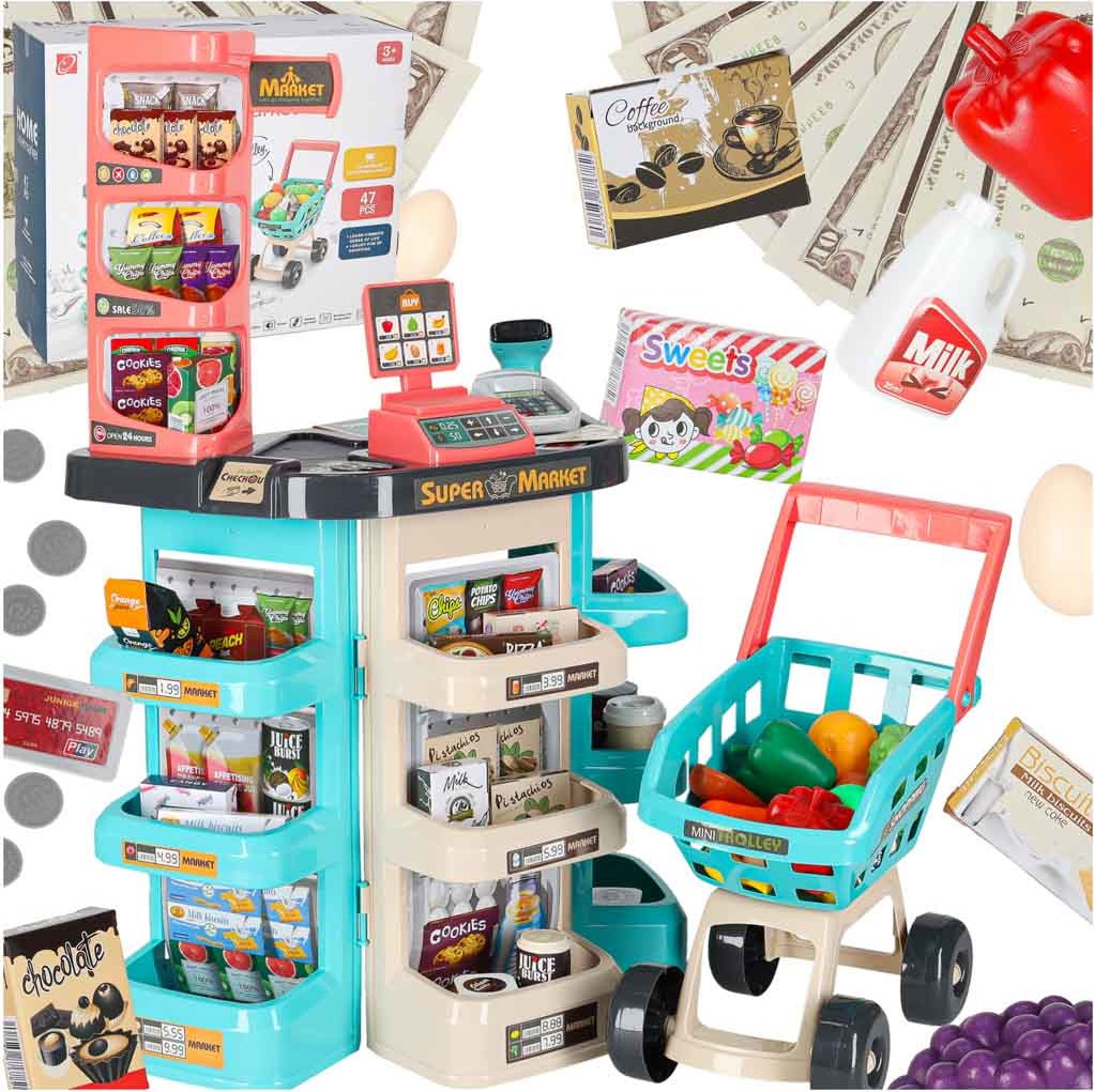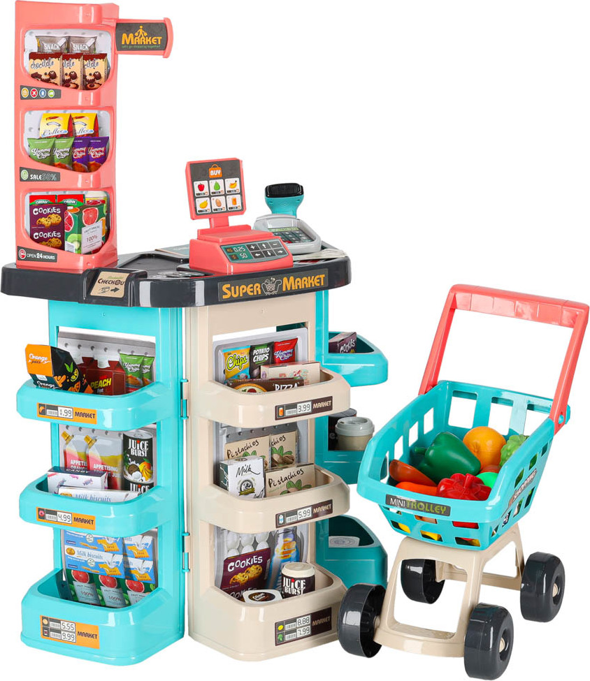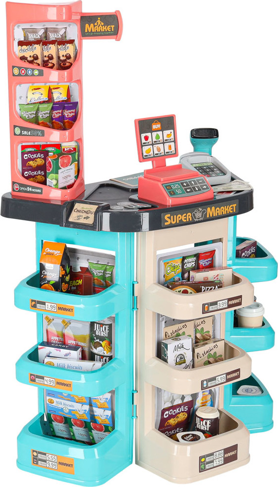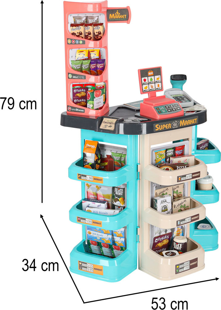 Hra na obchod je nedílnou součástí každého dětství. Téměř každé batole sní o tom, že si alespoň na chvíli zahraje na skutečného prodavače a zákazníka. Velký obchod s doplňky udělá obrovský dojem a splní dětské sny. Skvělá hračka, která vaše dítě přenese do světa dospělých a umožní mu vžít se do role prodavače, prodavačky a zákazníka.