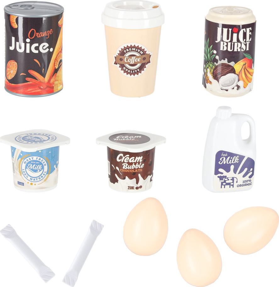 V sadě najdete všechny potřebné prvky k vytvoření skutečného obchodu s potravinami. Mezi 47 prvky najdete plastové ovoce, zeleninu, vejce a kartonové krabice imitující obaly od sušenek, džusu, bonbónů nebo pizzy. Nepopiratelným lákadlem sady je platební terminál a čtečka čárových kódů, které vydávají zvuky podobné skutečným přístrojům. Je čas vyrazit na nákupy! Hra na obchod je nejen zábavná, ale také se při ní hodně naučíte.