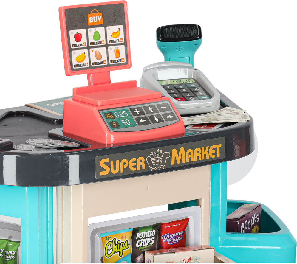Tato senzační sada je nabídkou fantastické, nikdy nekončící zábavy. Hračka byla vyrobena s důrazem na nejmenší detaily z vysoce kvalitního plastu. Potěší svými detaily - díky barevné grafice, mincím, bankovkám a potravinám si vaše dítě bude připadat jako ve skutečném supermarketu.
