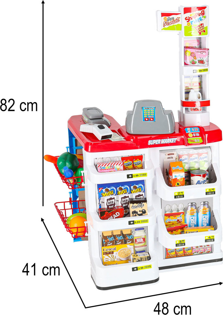 Hra na obchod je nejen zábavná, ale také se při ní hodně naučíte. Děti při hře rády napodobují dospělé. Získávají sociální dovednosti a učí se hrát role, které je čekají v dospělosti. Kromě toho při hře ve skupině se dítě naučí správné komunikaci a spolupráci a rozvíjí sociální dovednosti. Hra na obchod skvěle podněcuje představivost, podporuje kreativní a nekonvenční myšlení a rozvíjí manuální dovednosti nejmenších. Tato senzační sada je nabídkou fantastické, nikdy nekončící zábavy. Hračka byla vyrobena s důrazem na nejmenší detaily z vysoce kvalitního plastu.