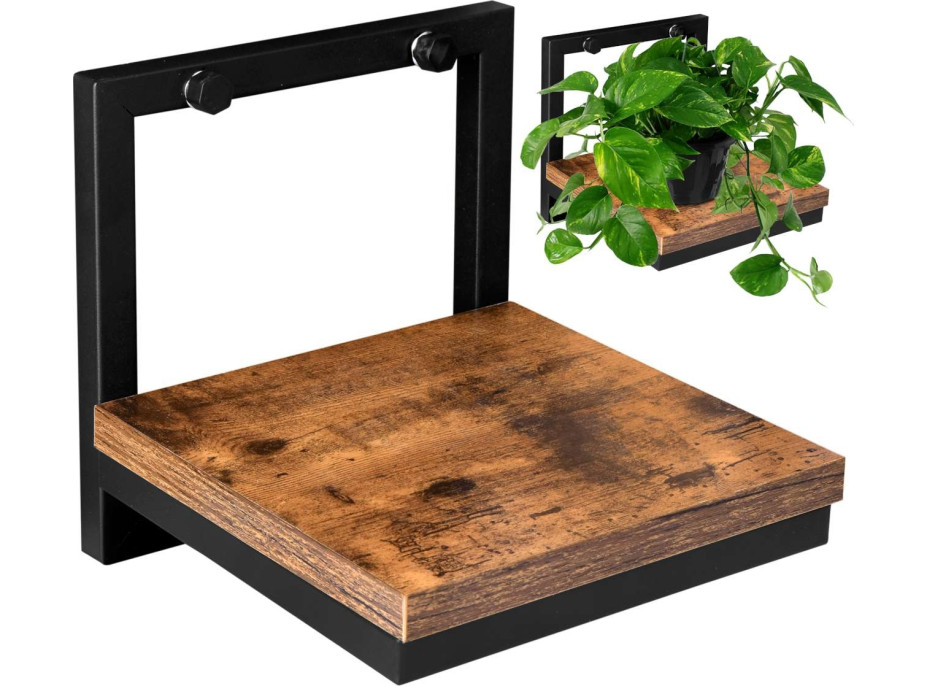 Závěsná police se vyznačuje jednoduchým designem a atraktivním designem, který zapadne do každé moderní místnosti v loftovém, klasickém i industriálním stylu. Je vyrobena z práškově lakovaných kovových profilů a laminovaných desek v barvě letitého dubu. Pevná kovová konstrukce zaručí odolnost police.