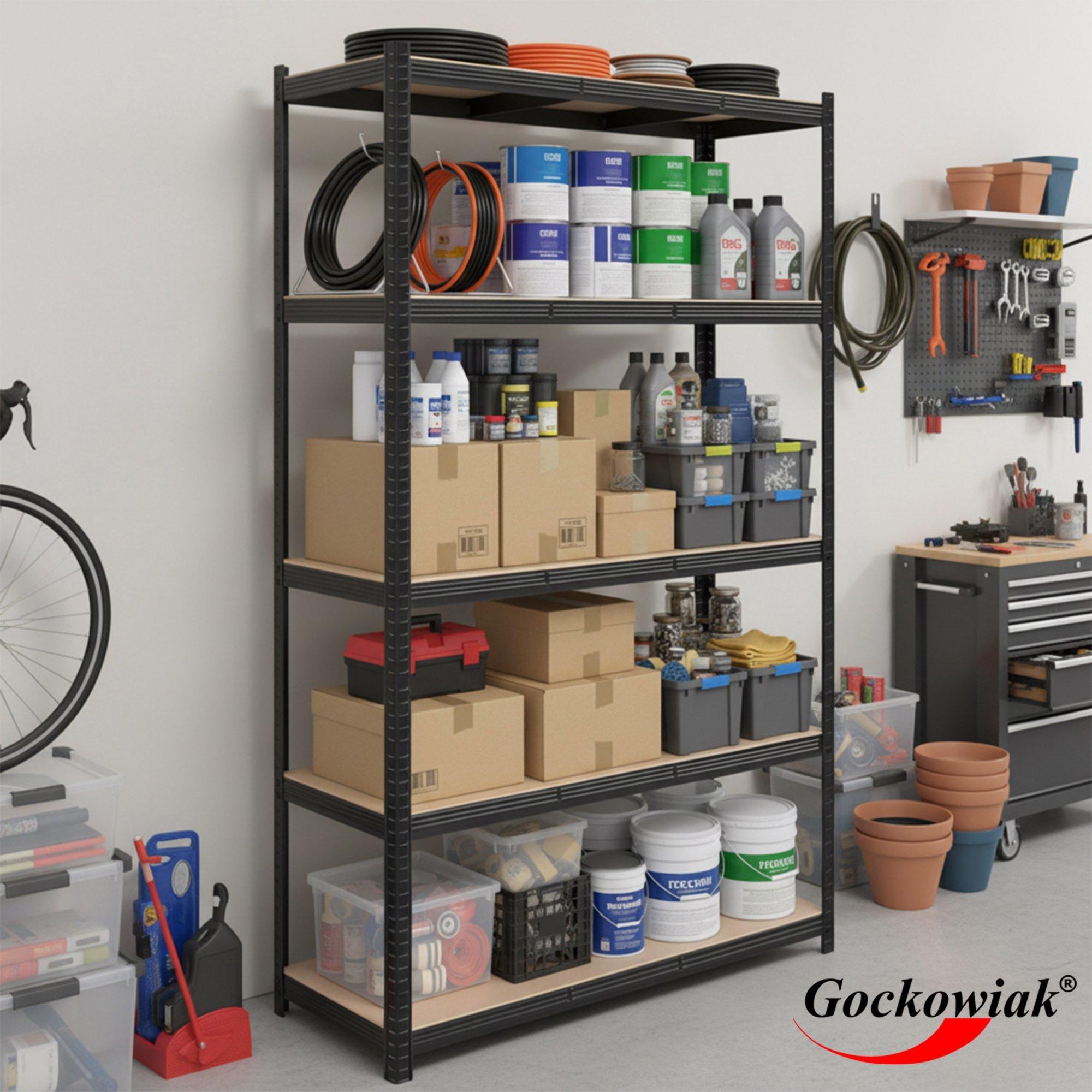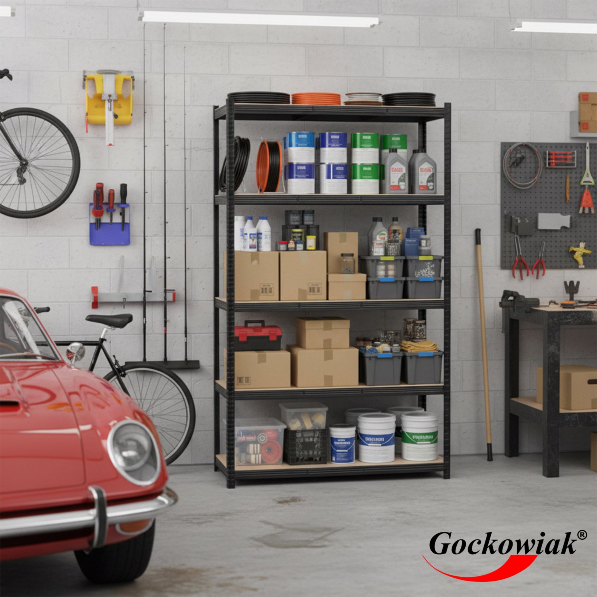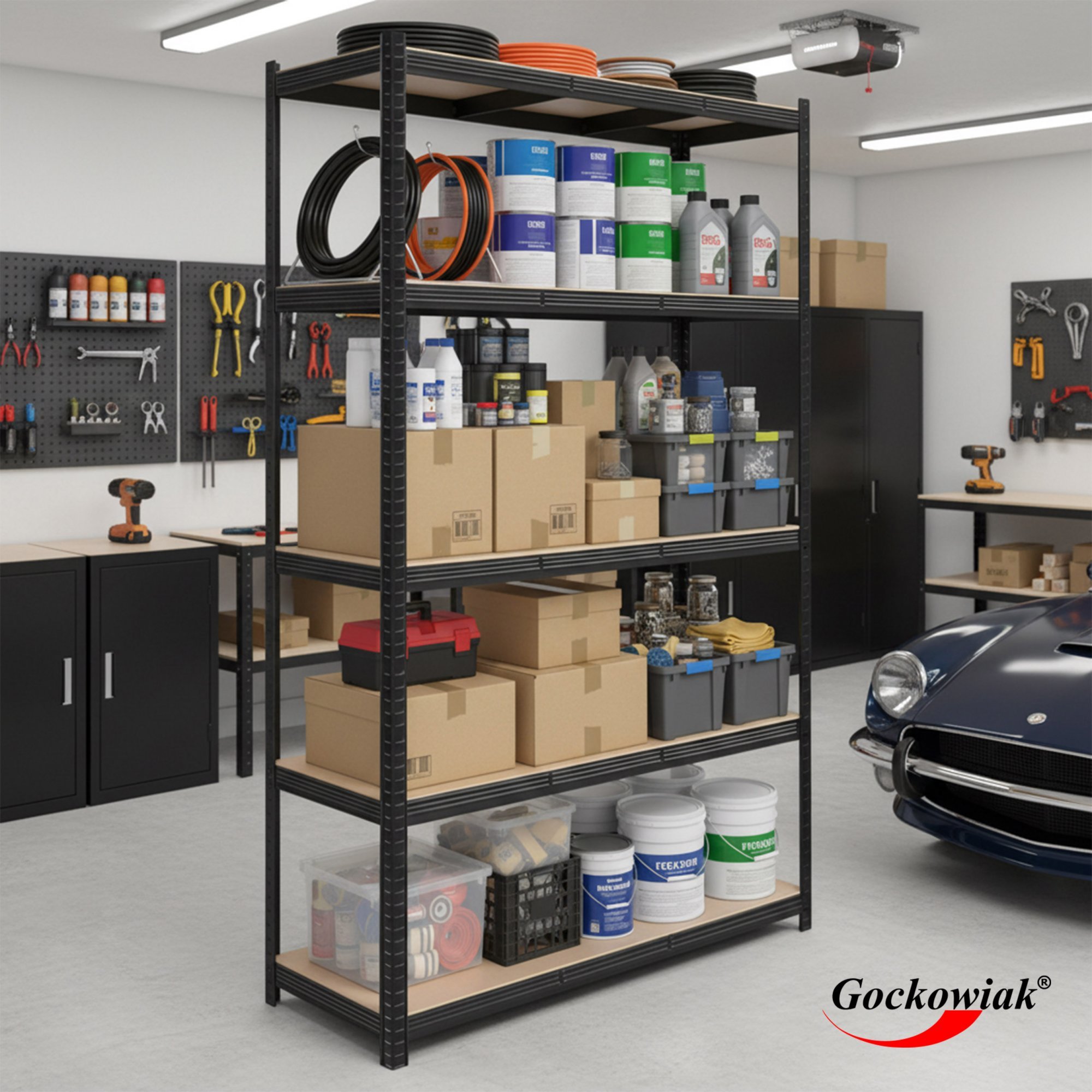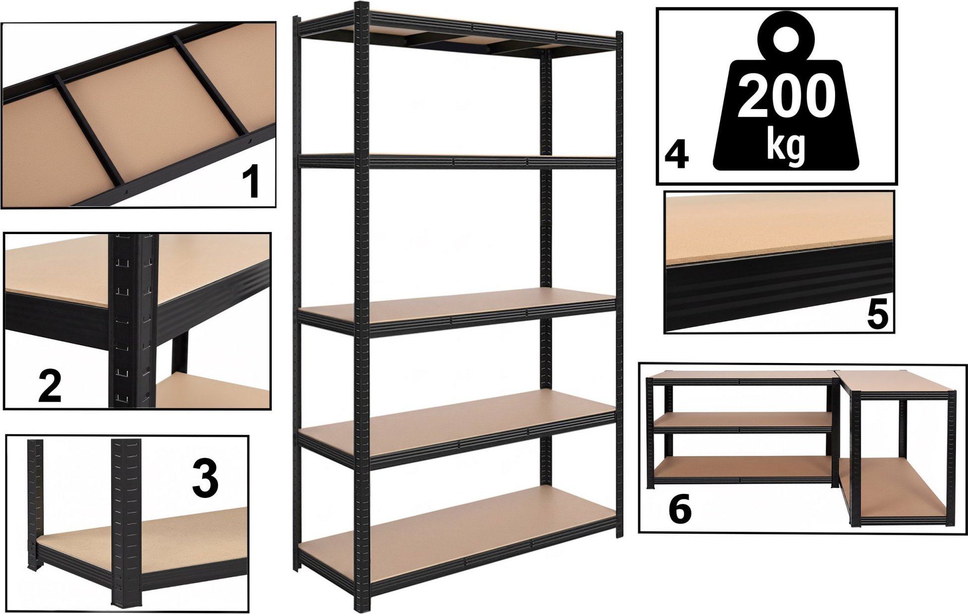 Policový regál s nosností 200 kg na polici (celkem až 1000 kg) je perfektním řešením pro organizaci vaší garáže, sklepa, dílny nebo obchodu. Jeho pevná konstrukce z pozinkované oceli a MDF desek zajišťuje stabilitu, odolnost a bezpečnost skladovaných předmětů. Bezšroubový montážní systém umožňuje rychlou a snadnou montáž a nastavitelné police umožňují nastavení výšky dle individuálních potřeb. Tento praktický, estetický a spolehlivý kus nábytku vám pomůže udržovat pořádek a efektivně využívat dostupný prostor.