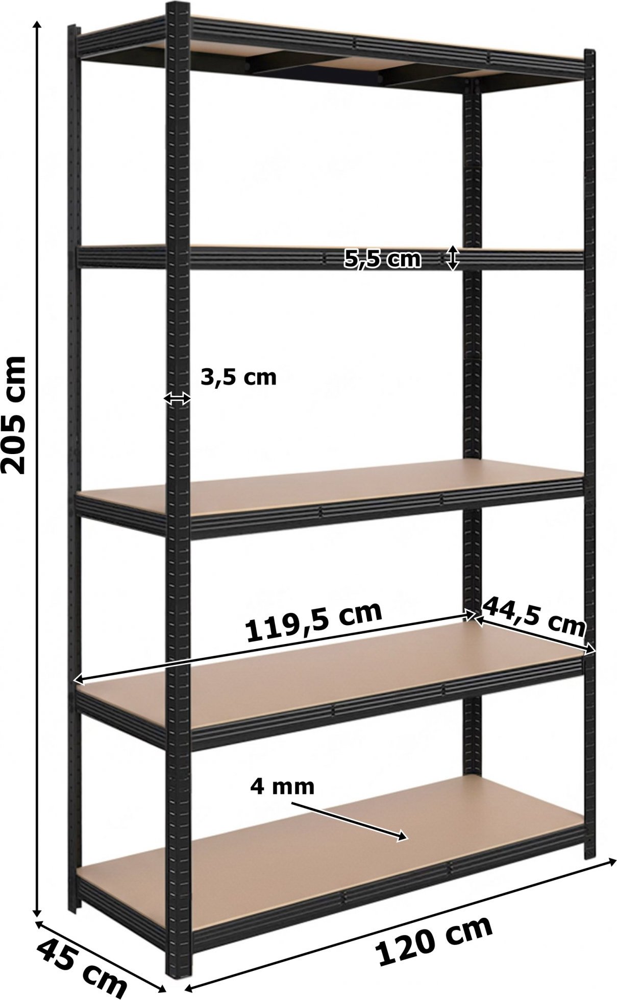 Policový regál - 5 polic - 205x120x45 cm - černý