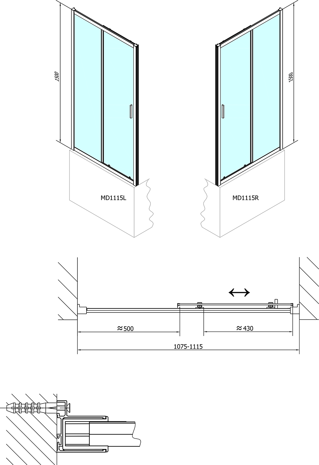- Dveře je možno instalovat samostatně do niky nebo ve spojení s boční stěnou