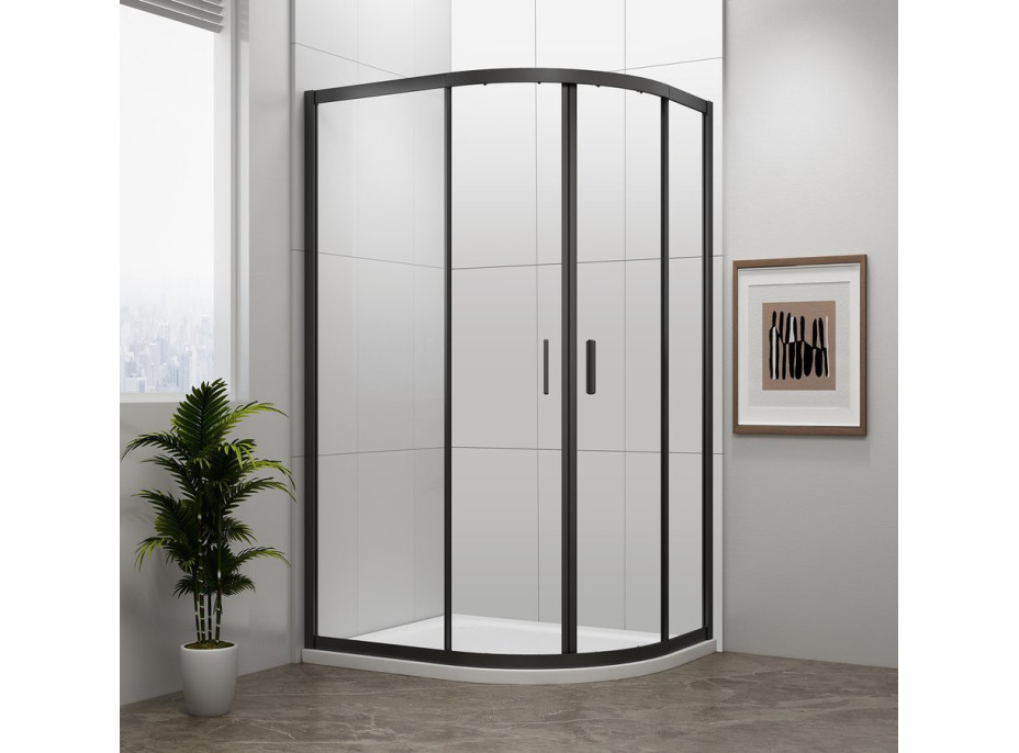 Polysan EASY BLACK čtvrtkruhová sprchová zástěna 1000x800mm, L/R, čiré sklo EL2915B