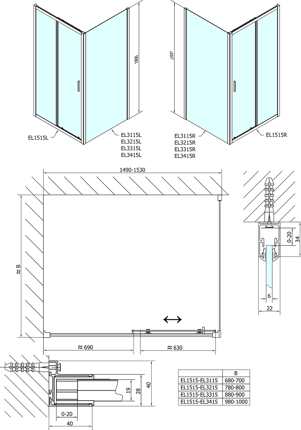 - Boční stěnu lze ke všem typům dveří instalovat z levé i pravé strany, bez ohledu na stranu otevírání dveří