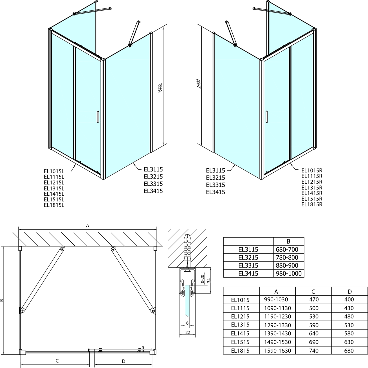 - Instalační rozměr dveří do niky lze díky rozšiřovacímu profilu EL825 zvětšit o 25 mm na každou stranu, celkem o 50 mm