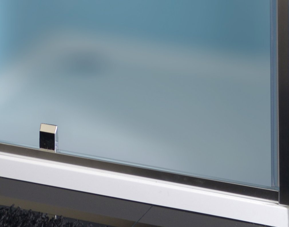 | Prakticky navržené madlo pro pohodlné otevírání dveří | Případné nerovnosti stěny elegantně skryje profil, do kterého se zasouvá sklo dle potřeby až 20 mm | Bezproblémový chod a snadné čištění posuvných dveří zajišťují zdvojené výklopné pojezdy |