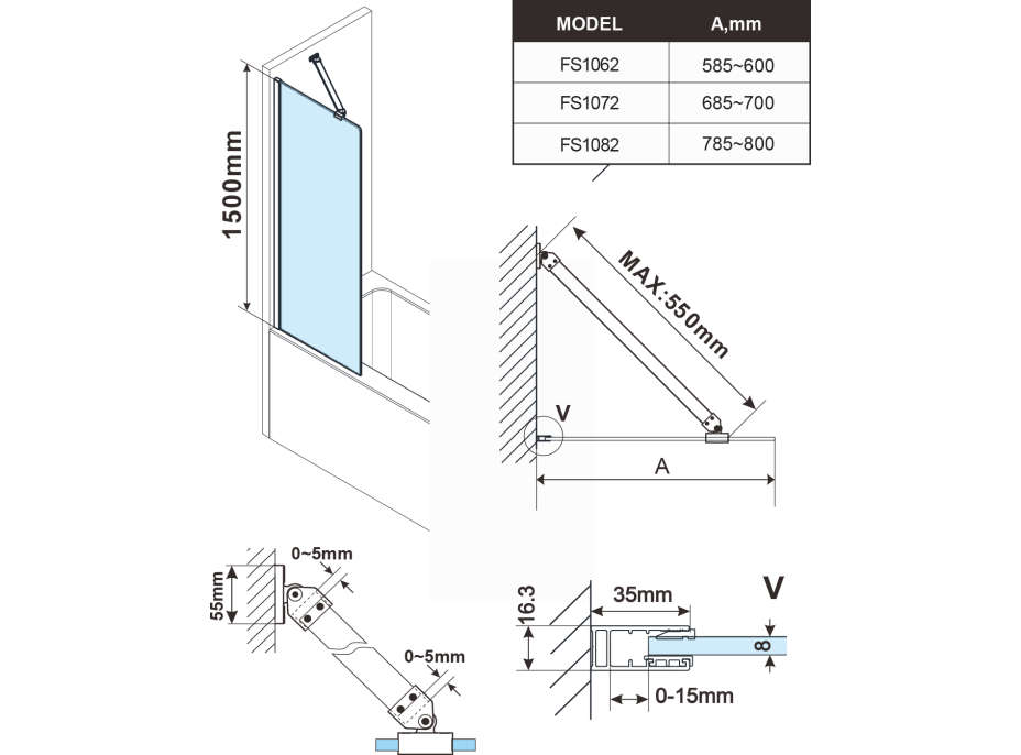 - Tloušťka skla: 8 mm