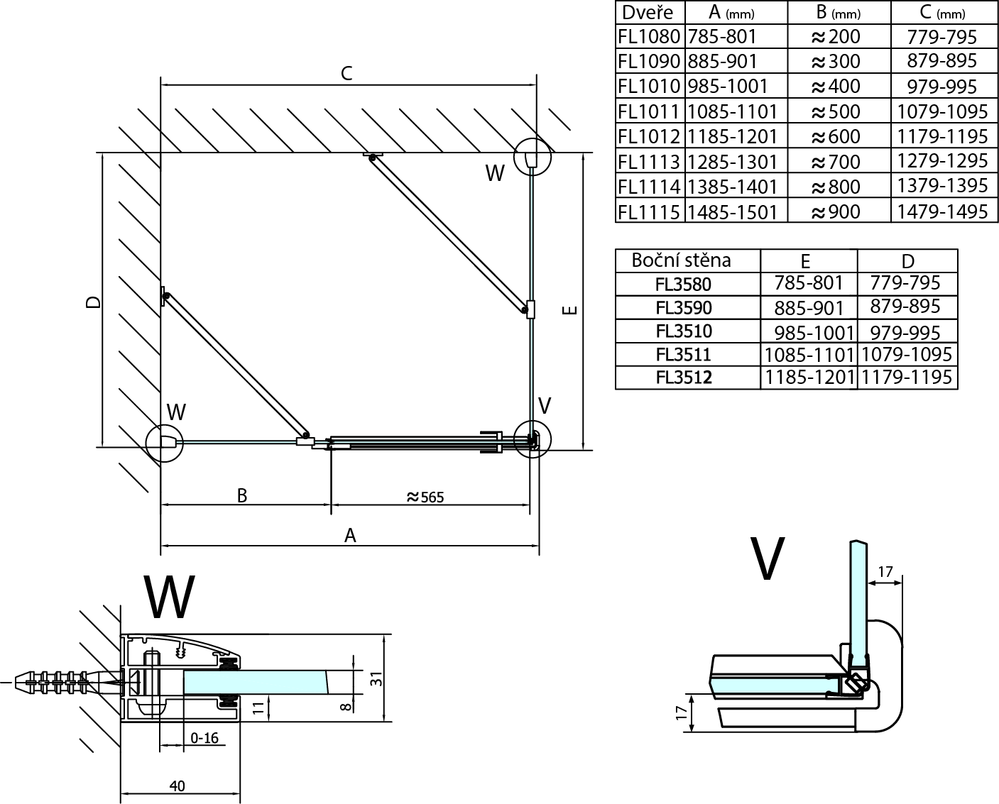 - Snadná montáž pomocí nastavitelného stěnového profilu 0-16 mm