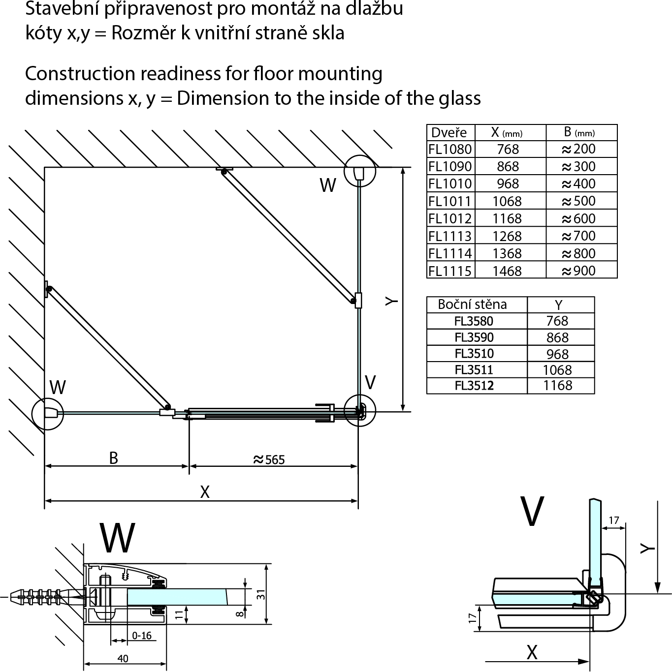 Polysan FORTIS LINE čtvercový sprchový kout 1100x1100 mm, R varianta FL1011RFL3511