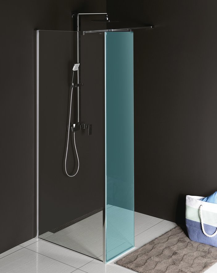 Skla jsou vespodu opatřena hliníkovým profilem, který dodává zástěnám elegantní vzhled, lépe těsní a usnadňuje instalaci.