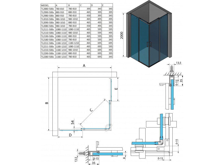 - Dveře jsou děleny na část posuvnou a pevnou - umožňují variabilní instalaci s levým nebo pravým otevíráním