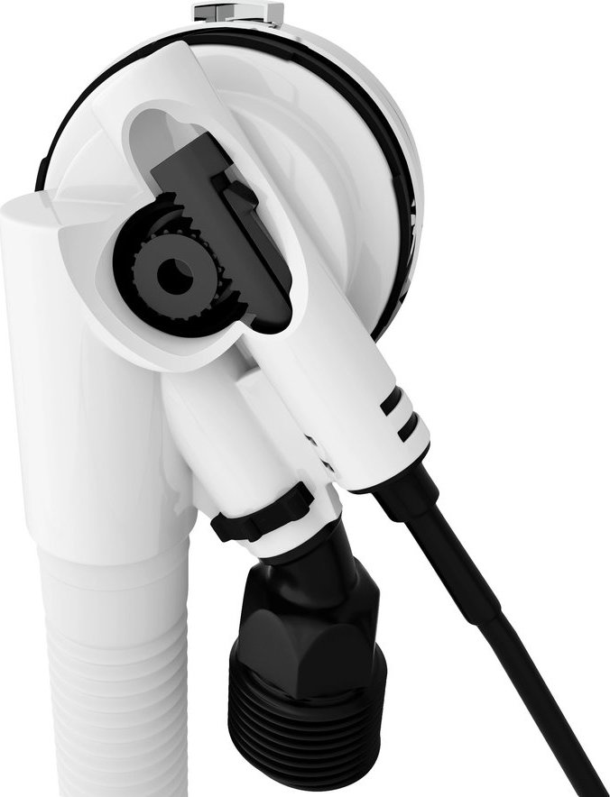Patentovaný systém otevírání a zavírání zátky pomocí ozubnice a pastorku: Při vypouštění vody drží zátka v otevřené poloze, i když je hladina vody vysoká. Zároveň se mechanizmus nepoškodí, pokud na zátku náhodou šlápnete nohou.