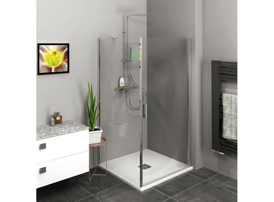 - Skládací dveře 700 až 900 mm v provedení levá a pravá lze instalovat do niky nebo v kombinaci L/R vytvořit čtvercovou nebo obdélníkovou zástěnu s rohovým vstupem