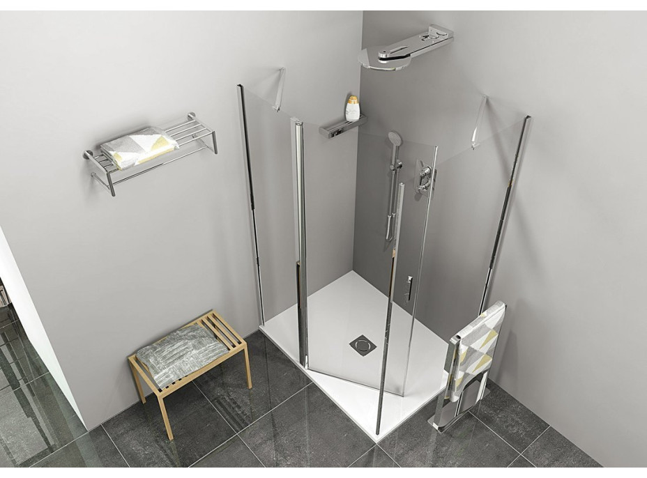 - Skládací dveře 700 až 900 mm v provedení levá a pravá lze instalovat do niky nebo v kombinaci L/R vytvořit čtvercovou nebo obdélníkovou zástěnu s rohovým vstupem