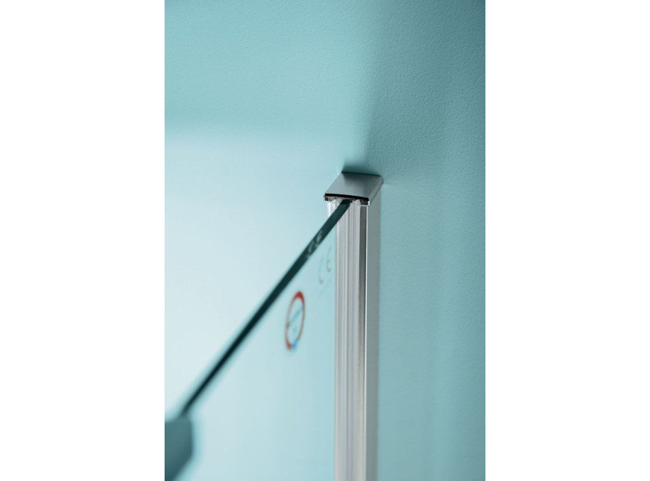 | Speciálně navržené madlo pro pohodlné otevírání dveří. | Ploché magnetické těsnění elegantně skryté v hliníkovém profilu umožňuje otvírat dveře na obě strany u všech modelů dveří do niky a v kombinaci s boční stěnou. | Otočný profil v minimalistickém provedení se zvedací funkcí pro pohodlné otevírání. Čistá linie - sklo protíná profil na obou stranách ve stejné úrovni. | Stěnové nerovnosti elegantně skryje hliníkový profil, do kterého se zasouvá sklo dle potřeby až 20 mm. Stabilitu skel zajišťuje elegantní vzpěra s nastavitelným úhlem uchycení na obou stranách. |