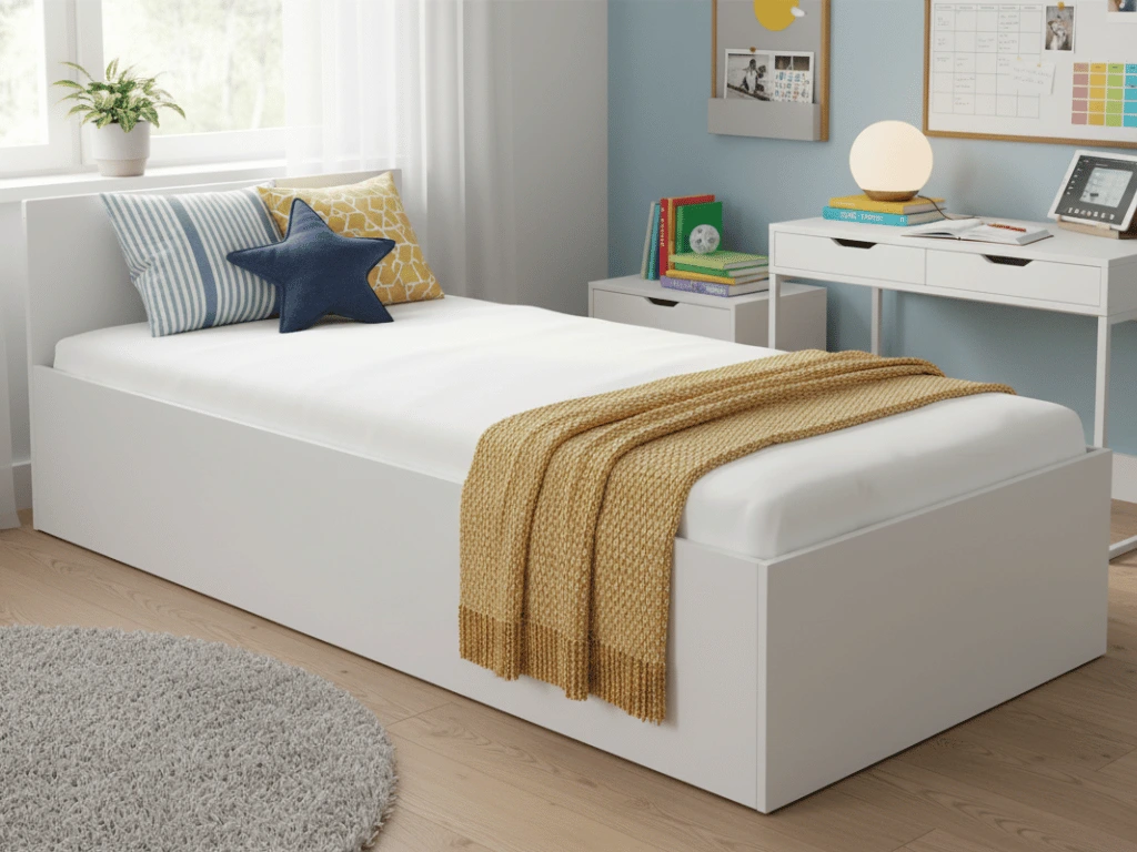 Jednolůžková postel ORVILLE II je ideální do dětského pokoje nebo pokoje pro studenta. Postel poskytuje pocit komfortu díky své pevné konstrukci a modernímu, tradičnímu vzhledu. Je vyrobena z kvalitní laminované desky o tloušťce 16 mm, která je odolná proti poškrábání, poškození, vlhkosti a vysokým teplotám. Hrany jsou zakončeny ABS lištou, což zajišťuje jejich odolnost a pevnost. Postel je vybavena úložným prostorem pod vyklápěcí deskou, která slouží jako rošt. Díky tomuto praktickému řešení máte vždy po ruce dostatek místa pro uložení přikrývek, polštářů a dalších věcí.