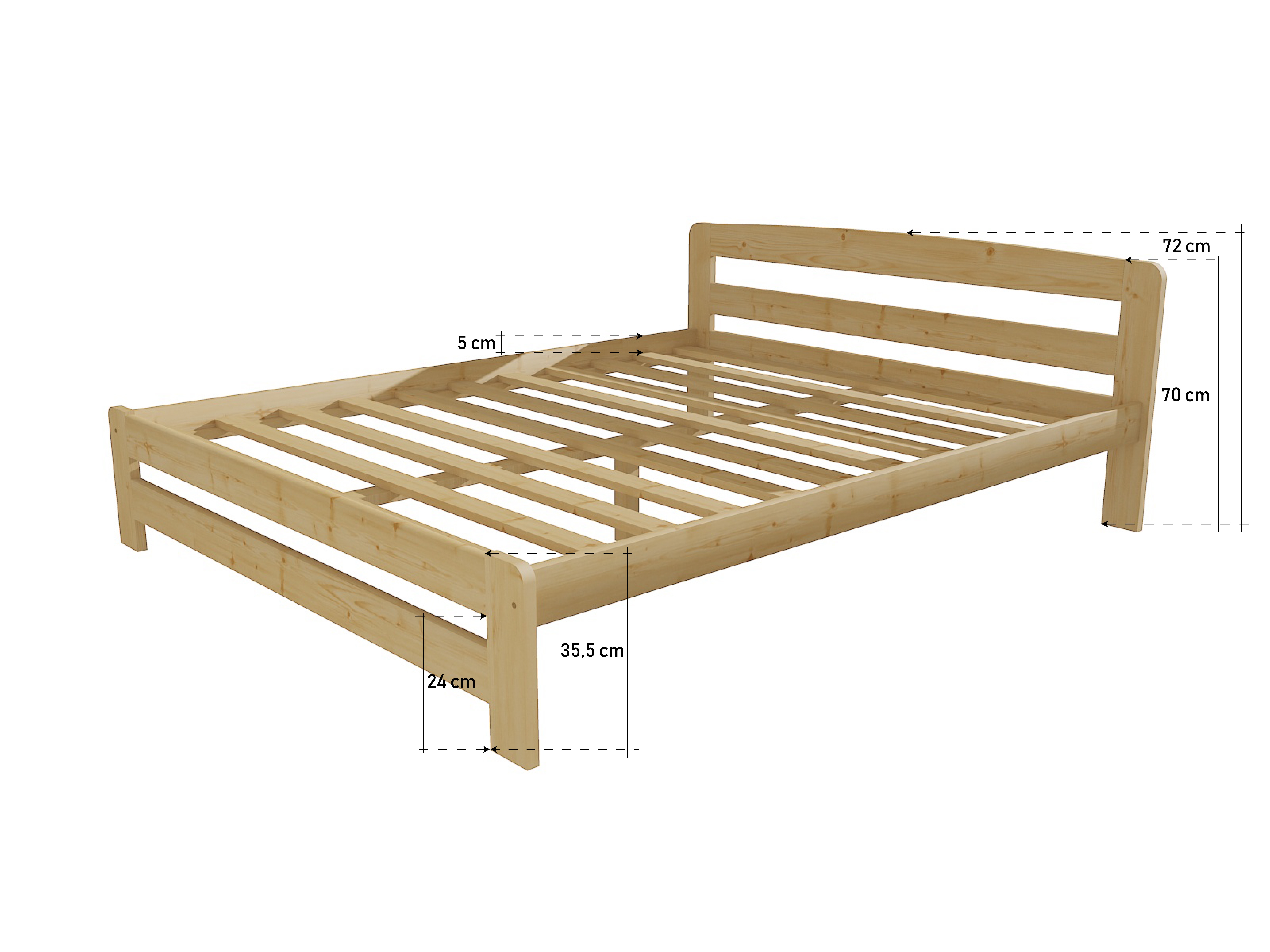 Kvalitní a stabilní dřevěná postel by měla být základem každé ložnice nebo dětského pokoje. Precizní zpracování dřeva té nejvyšší kvality zaručuje u této postele dlouhou životnost. Použitý materiál je masiv borovice o šířce 2,6 cm. Aby se předešlo úrazům, jsou hrany postele zaobleny. Postel vám na přání můžeme dodat v surovém stavu bez povrchových úprav (pouze dohladka obroušenou) nebo můžete zvolit ošetření povrchu nezávadným ekologickým lakem, takže krásně vynikne struktura dřeva borovice. Případně si můžete vybrat z moření dřeva v odstínech olše, dubu a ořechu nebo některou z oblíbených barev. Toto dvoulůžko lze kombinovat s každým výrobkem vyrobeným z borovicového masivu. Tato postel je vhodná do studentského pokoje, ložnice, případně své uplatnění nalezne na chatě nebo chalupě. Předností postele je masivní rám, který svým designem působí velice příjemně a elegantně. Výrobek je dodáván v demontu včetně obrázkového návodu.