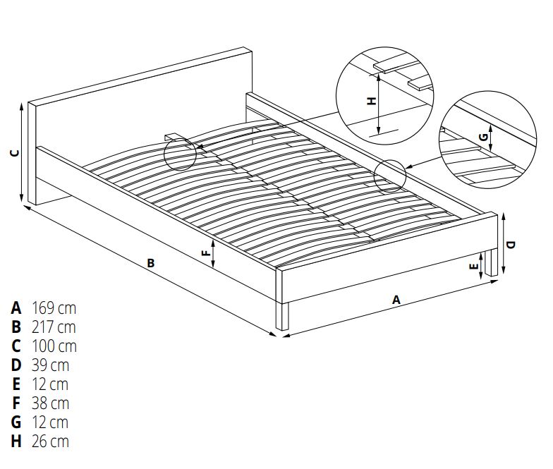 K posteli dodáváme kvalitní lamelový rošt s odolnými plastovými pouzdry. Jednotlivé lamely jsou uchyceny do bočních podpůrných lišt. Pro správné rozložení váhy a větší odolnost je středová lišta vybavena dvěma nohami. Matrace není součástí dodávky, ale můžete si ji přikoupit ZDE.