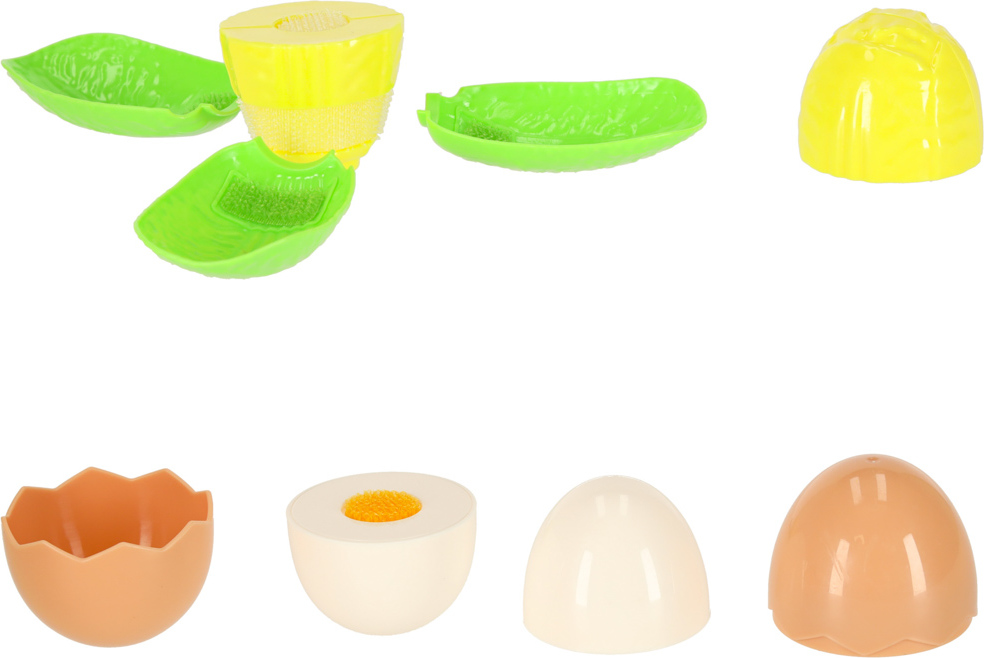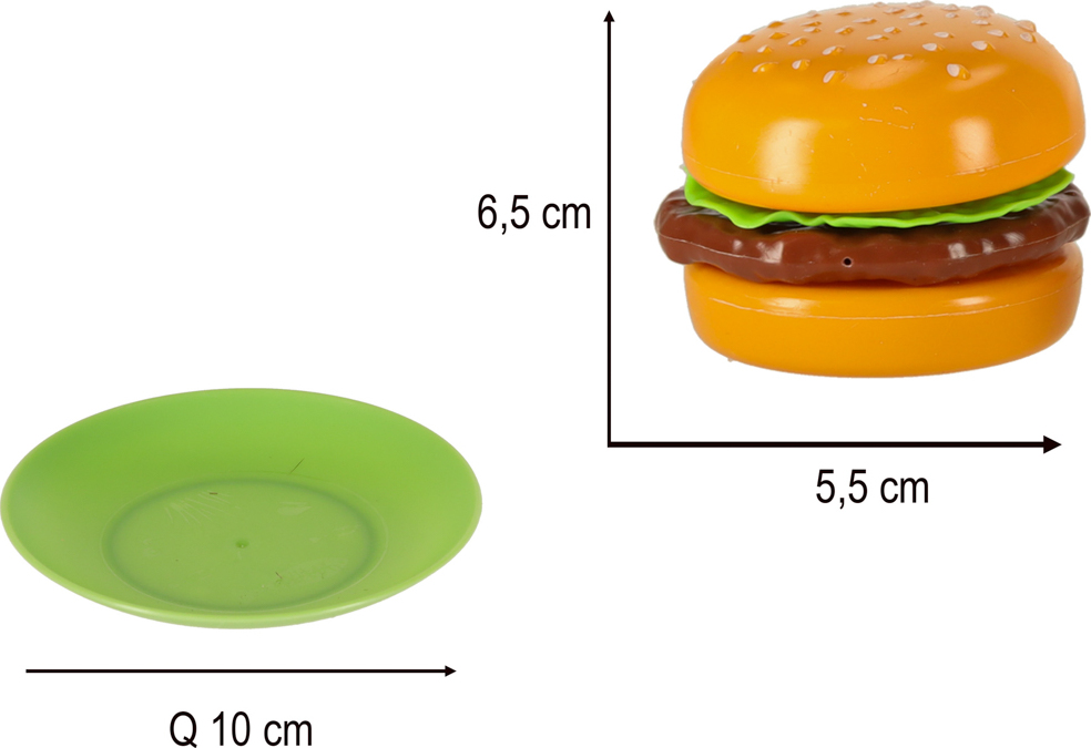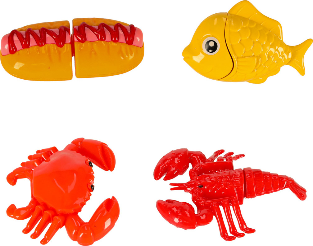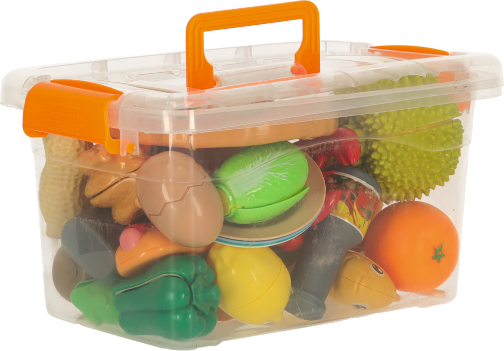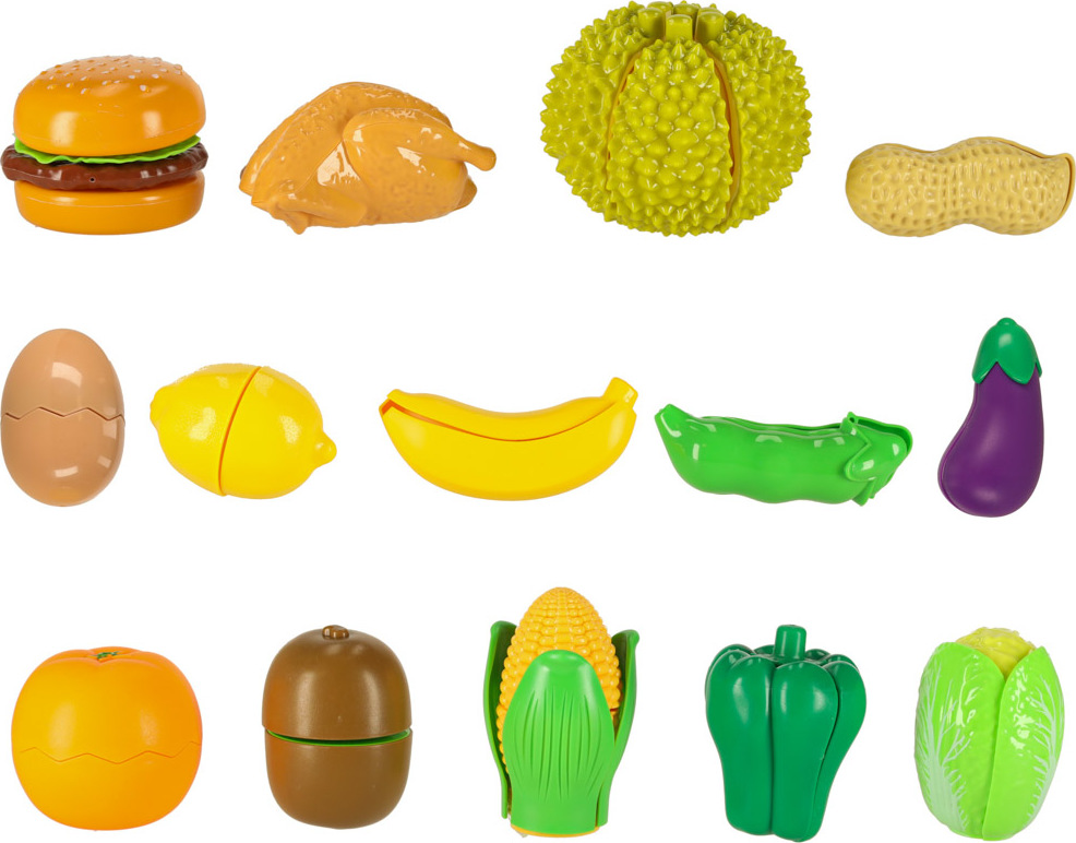 Tato plastová sada na jídlo, kterou si děti mohou krájet hračkami, obsahuje položky jako pizzu, hamburgery, ovoce, zeleninu a kuchyňské doplňky. Všechny položky jsou baleny v plastové krabičce, takže je po hraní snadno uspořádáte. Sada podporuje rozvoj jemné motoriky, koordinace rukou a očí a stimuluje dětskou fantazii.