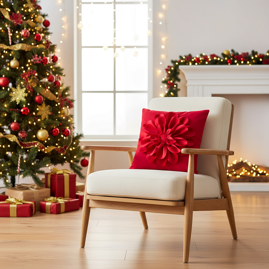 Povlak na polštář FOREVER YOURS Květ 3D 42x42 cm - červený