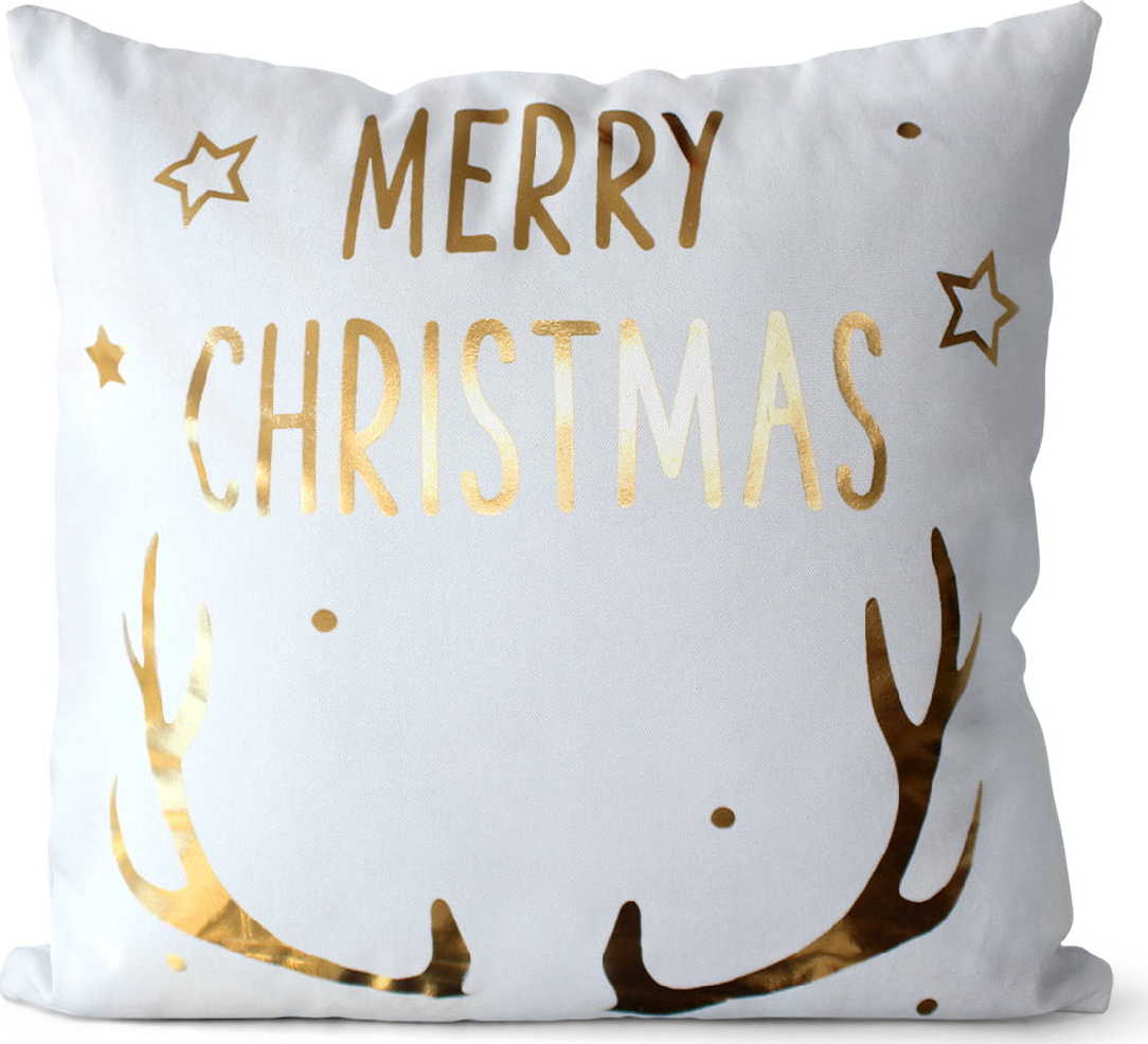 Povlak na polštář GOLD CHRISTMAS DEER 45x45 cm - bílý/zlatý