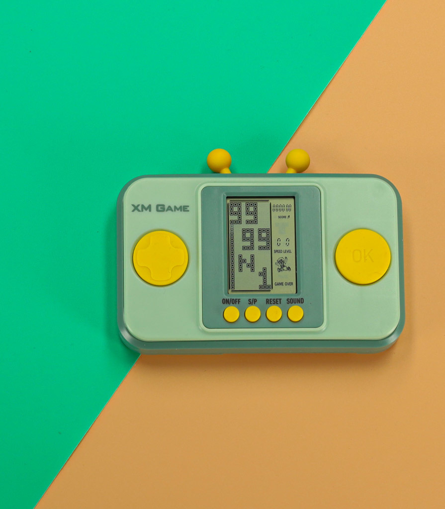 Tato přenosná elektronická arkádová herní konzole nabízí řadu her, jako je skládání padajících kostek a střílení. Díky svým kompaktním rozměrům (11,5 x 8,5 cm) se pohodlně drží.