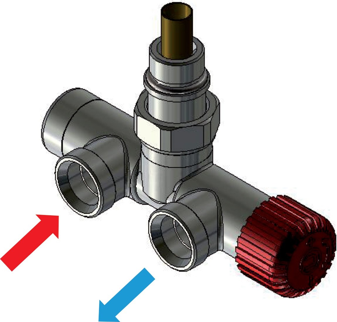 Ventil je určen pro připojení radiátorů na rozvody TUV s vývodem ze zdi. Nelze kombinovat s elektrickou topnou tyčí.