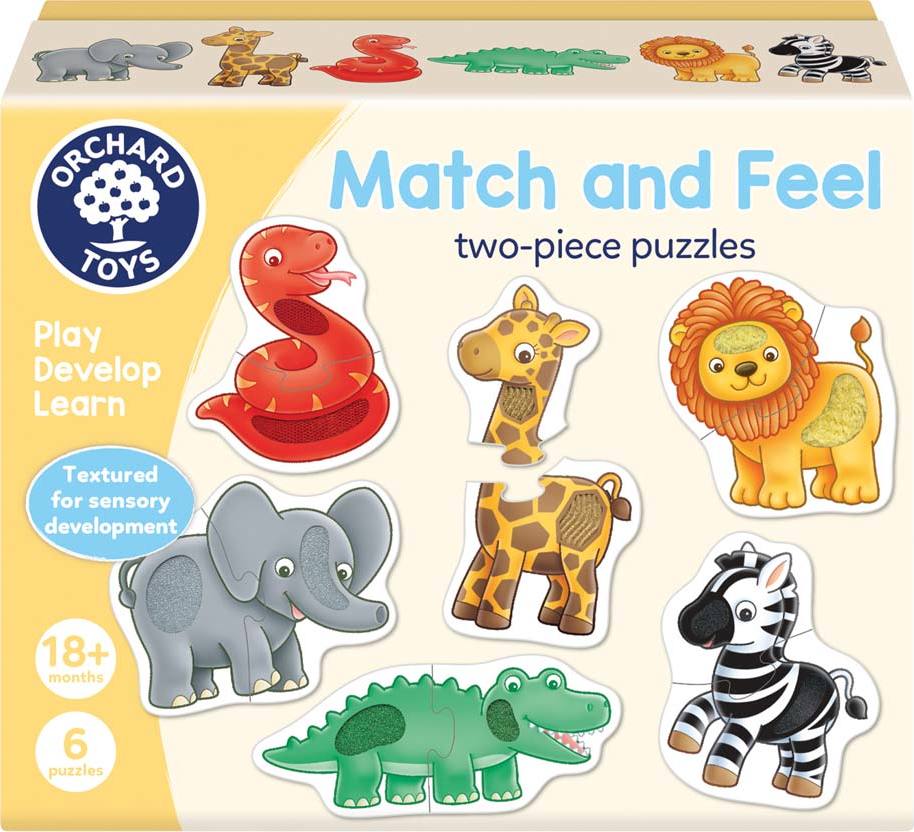 Objevte svět džungle prostřednictvím šesti robustních dvoudílných puzzle s různými texturami. Lví hříva, hadí kůže či krokodýlí šupiny – každé zvířátko přináší nový hmatový zážitek. Velké dílky jsou ideální pro malé ruce. Vyrobeno z udržitelných materiálů – ideální volba pro raný vývoj a hravé objevování světa.