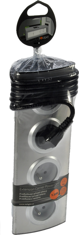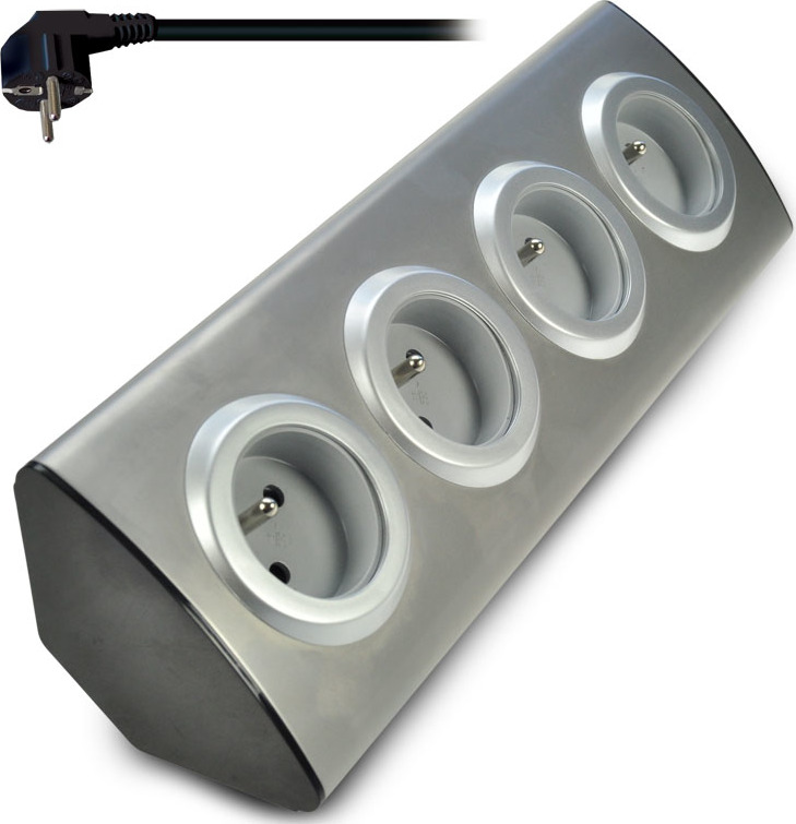 Prodlužovací přívod, 4 zásuvky, stříbrný, 1,5m, rohový design