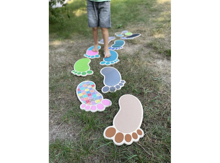 Souprava smyslových panelů ve tvaru stop a kruhů nalezne široké uplatnění ve školských zařízeních, ordinacích lékařů i v domácím prostředí, zejména při výuce a výchově předškolních dětí, dětí s poruchami zraku, nebo při terapii. Panely jsou navrženy a vyrobeny s důrazem na každodenní použití, jsou robustní a odolné a jsou skvělou terapeutickou pomůckou pro děti již od 2 let věku. Panely jsou opatřeny různými povrchy, jsou na dotek tvrdé, měkké, chladné, teplé, jemné či drsné, což stimuluje a rozvíjí hmat. Zkoumání podobností a rozdílů povrchů, barev a textur také trénuje zrak a zlepšuje vnímavost. Jemnou stimulací panelů se uklidní emoce, sníží se stres a svalové napětí. Při chůzi po stezce tvořené smyslovými stopami se rozvíjí smysl pro rovnováhu, hrubá motorika a koordinace, což pozitivně ovlivňuje orientaci v prostoru a celkový vývoj dítěte. Panely lze využít také při práci s hyperaktivními dětmi nebo dětmi, které mají problémy se seberegulací.