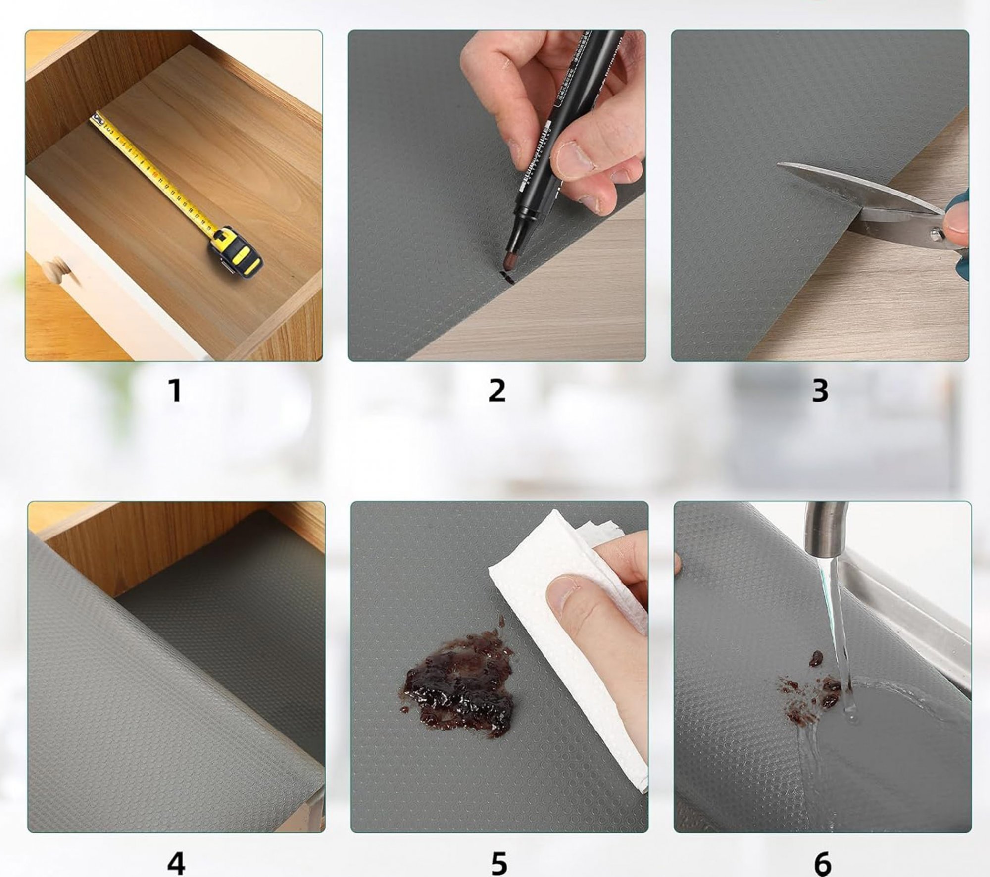 Protiskluzová podložka Bargo 48 x 300 cm je funkční a estetické řešení, které pomáhá udržovat pořádek a chrání povrchy v zásuvkách, na policích a na dalších místech vyžadujících stabilitu. Zabraňuje posouvání předmětů, snižuje hluk při otevírání a zavírání zásuvek a zvyšuje pohodlí každodenního používání nábytku. Hlavní výhodou podložky je, že ji lze zkrátit na míru, takže se snadno přizpůsobí konkrétnímu prostoru. Konec klouzání doplňků a neustálému úklidu – podložka Bargo udrží vše na svém místě a zajistí pohodlí a pořádek každý den.