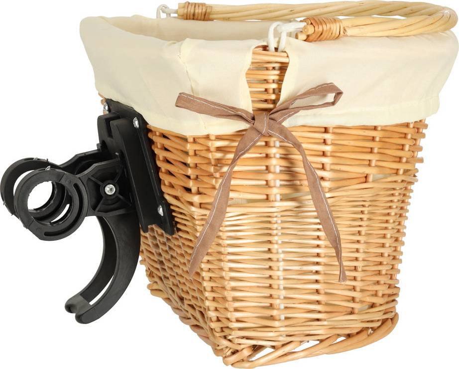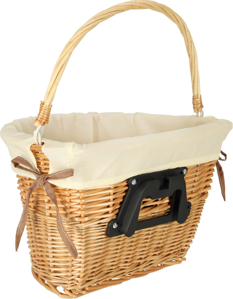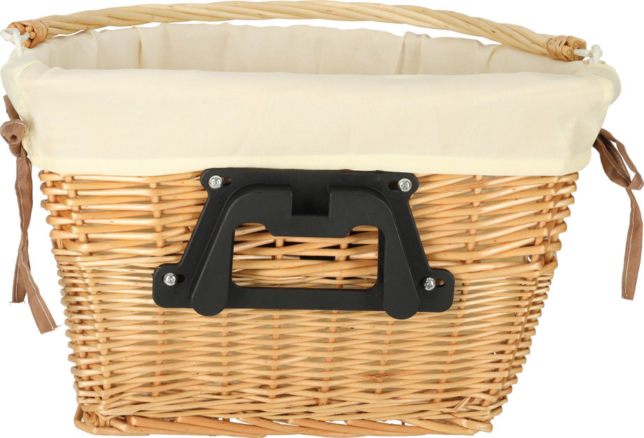 Proutěný košík na řídítka vašeho kola s látkovou vložkou. Ideální pro jakoukoli cyklistickou vyjížďku – hodně se do něj vejde. Díky systému upevnění „click“ jej lze rychle připevnit a odpojit bez nutnosti demontáže. Má rukojeť pro snadné přenášení. Potřebný montážní materiál je součástí balení.