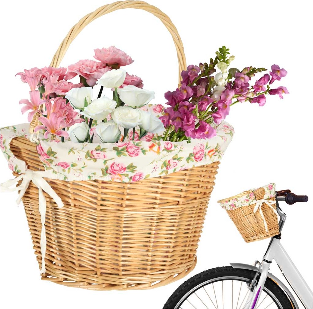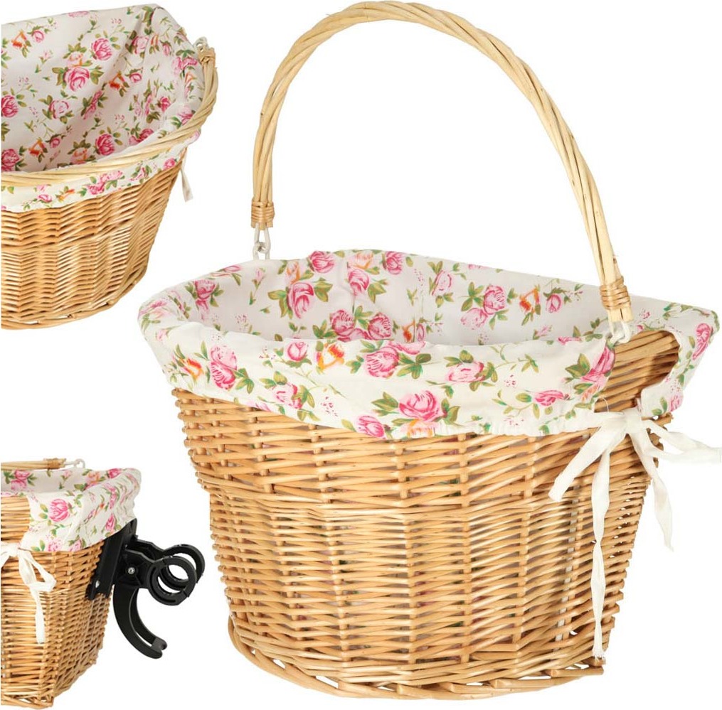 Proutěný košík na řídítka vašeho kola s látkovou vložkou. Ideální pro jakoukoli cyklistickou vyjížďku – hodně se do něj vejde. Díky systému upevnění „click“ jej lze rychle připevnit a odpojit bez nutnosti demontáže. Má rukojeť pro snadné přenášení. Potřebný montážní materiál je součástí balení.