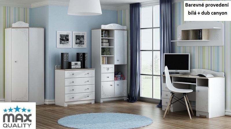 Psací stůl MAGIC - TYP B se vyznačuje vysokou kvalitou řemeslného zpracování, které zajišťují kvalitní lamino desky (18 mm) včetně ABS/PVC hran. Tento moderní produkt z naší nabídky splňuje poslední designové trendy a lehce tak zapadne do libovolného moderního pokojíku vašeho mladého studenta. Vytvořte pro vaše dítě to nejlepší prostředí, ve kterém bude mít radost se učit. Sestavte si snadno a rychle celý pokoj z jedné kolekce. V každé kolekci nabízíme mnoho různých typů jednotlivých částí pokojové sestavy.
