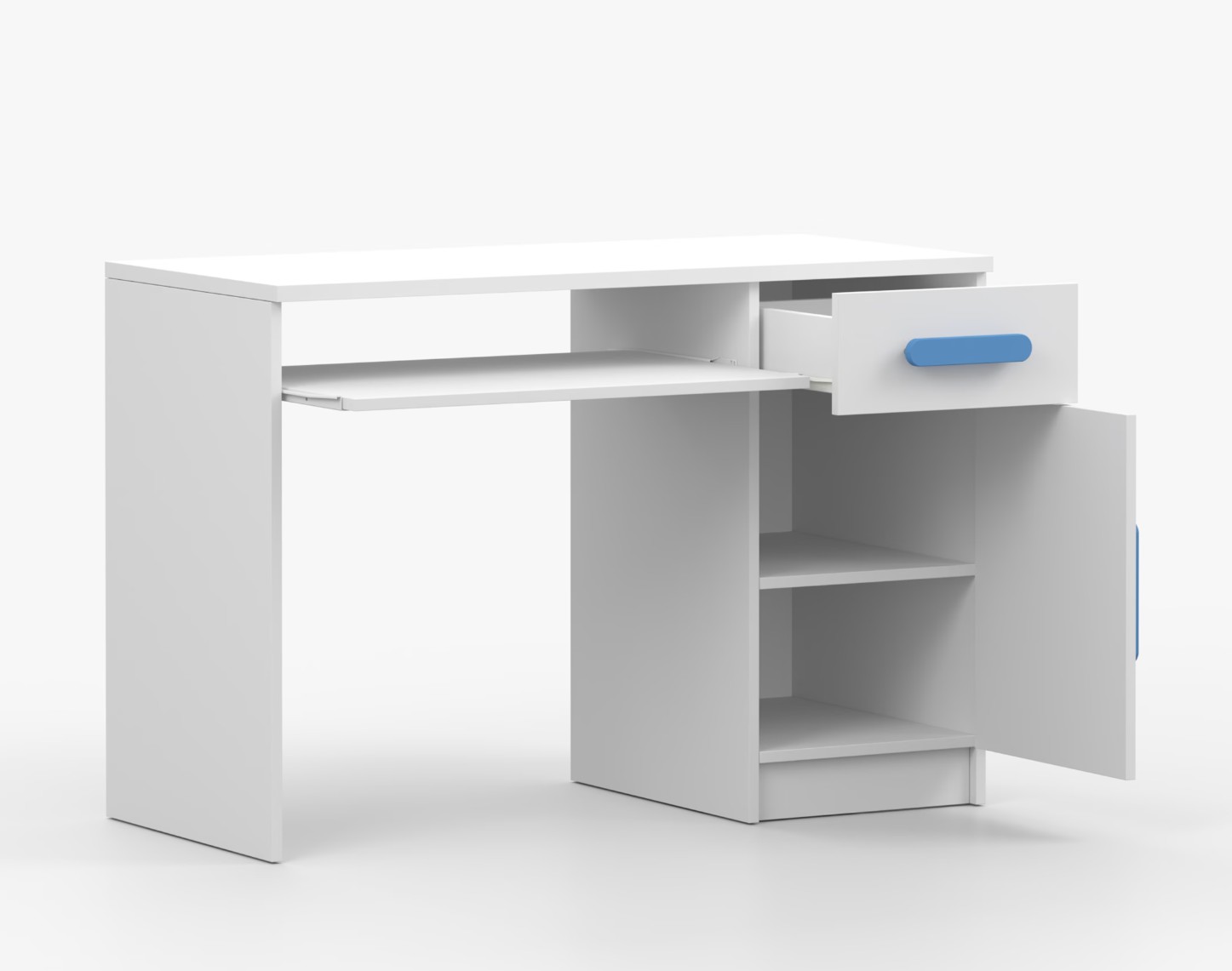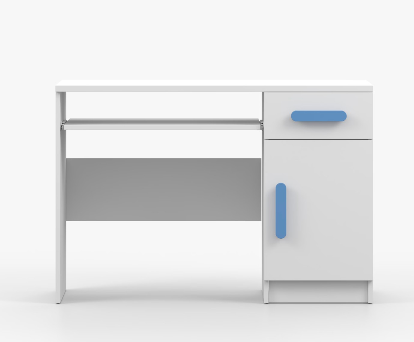 Pro studenty i kancelářské prostředí je psací stůl SCOUT ideální volbou. Nabízí velkou pracovní plochu, na které najdete dostatek místa pro práci i studium. Zásuvka pod pracovní deskou umožňuje uložení klávesnice počítače a šuplík na příslušenství usnadní organizaci pracovního prostoru. Praktická skříňka s policí je umístěna pod šuplíkem. Barevné úchytky z PVC přidávají zajímavý designový prvek k tomuto praktickému kusu nábytku.