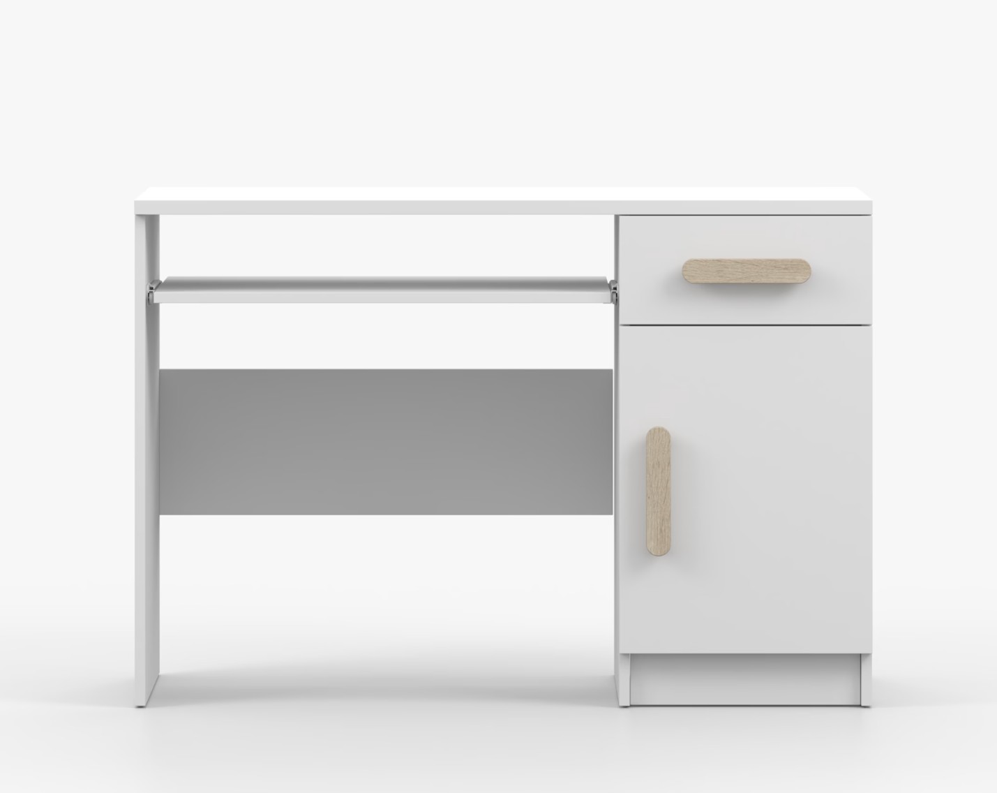 Pro studenty i kancelářské prostředí je psací stůl SCOUT ideální volbou. Nabízí velkou pracovní plochu, na které najdete dostatek místa pro práci i studium. Zásuvka pod pracovní deskou umožňuje uložení klávesnice počítače a šuplík na příslušenství usnadní organizaci pracovního prostoru. Praktická skříňka s policí je umístěna pod šuplíkem. Barevné úchytky z PVC přidávají zajímavý designový prvek k tomuto praktickému kusu nábytku.