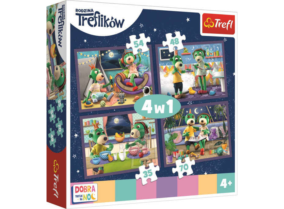 Puzzle Dobrou noc, Treflíci: Večerní rituály 4v1 (35,48,54,70 dílků)
