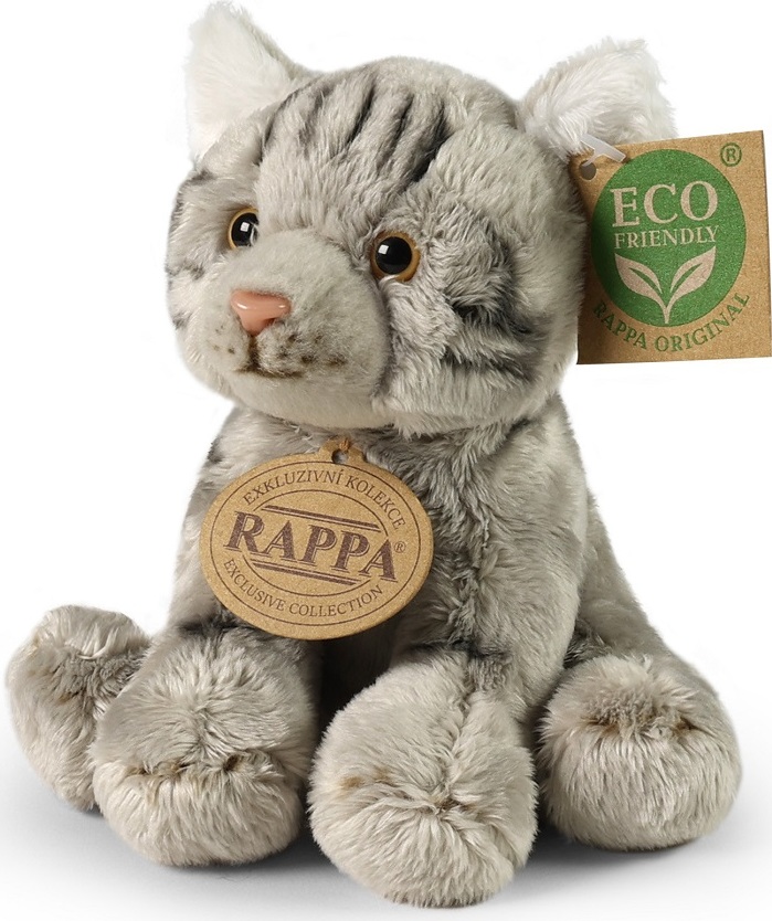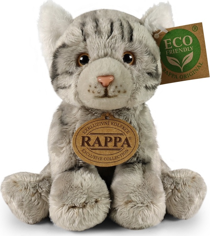 Rappa Plyšová kočka sedící šedá 14 cm ECO-FRIENDLY