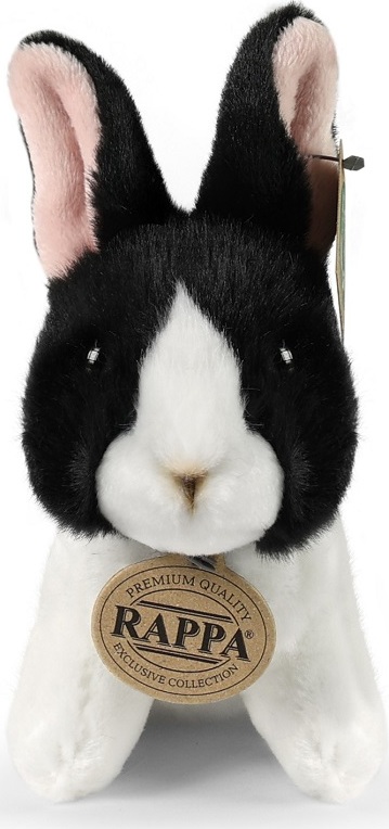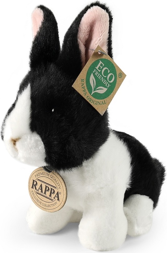 Plyšový králík bílo-černý sedící o velikosti 16 cm je vyroben z nejkvalitnějších materiálů a patří do exkluzivní kolekce plyšových hraček značky Rappa. Každý kus je pečlivě ručně zpracován, díky čemuž působí velmi realisticky a připomíná skutečné zvíře.