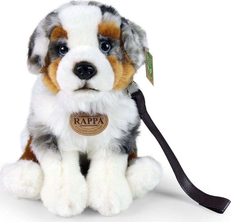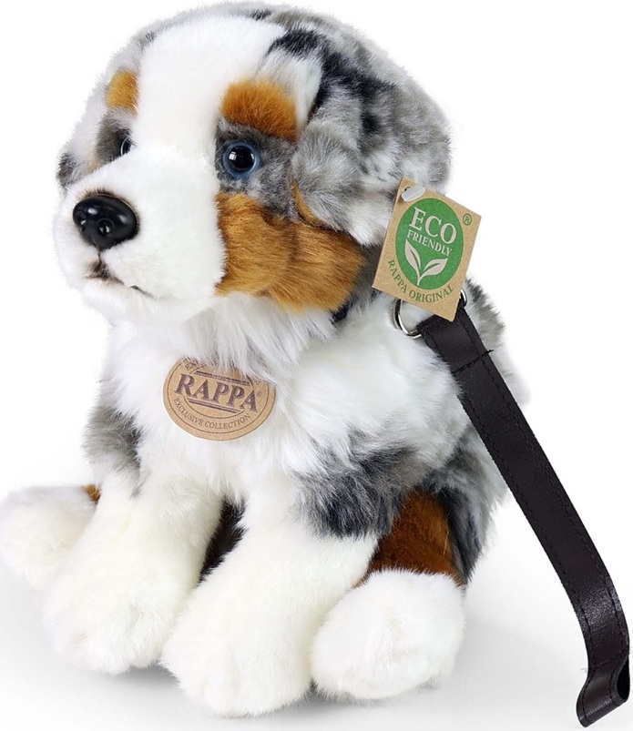 Plyšový pes australský ovčák sedící o velikosti 27 cm je ručně ušitý z vysoce kvalitního jemného plyše, a díky tomu vypadá jako živý. Tento plyšový kousek je ideálním dárkem pro všechny milovníky heboučkých plyšáků. Je součástí exkluzivní kolekce plyšových hraček značky RAPPA.