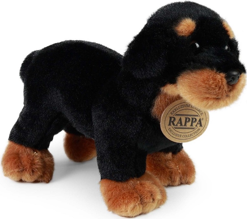 Plyšový pes rotvajler o velikosti 18 cm je vyroben z nejkvalitnějších materiálů a patří do exkluzivní kolekce plyšových hraček značky Rappa. Každý kus je pečlivě ručně zpracován, díky čemuž působí velmi realisticky a připomíná skutečné zvíře.