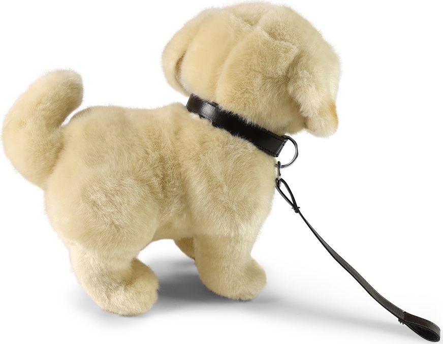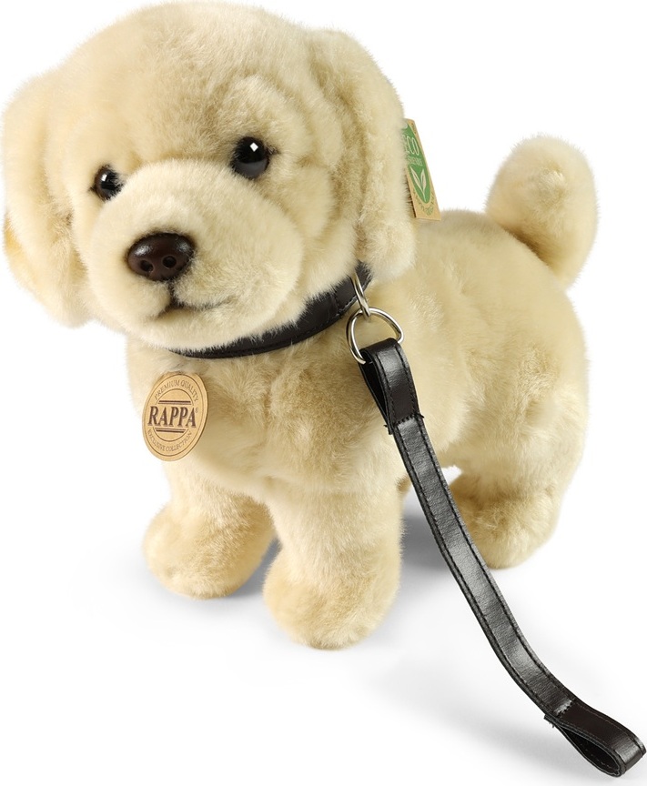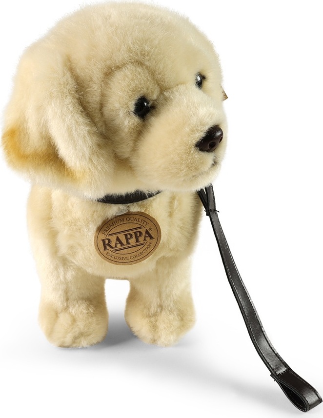 Plyšový pes zlatý retrívr stojící s vodítkem o velikosti 25 cm je ručně ušitý z vysoce kvalitního jemného plyše, a díky tomu vypadá jako živý. Tento plyšový kousek je ideálním dárkem pro všechny milovníky heboučkých plyšáků. Je součástí exkluzivní kolekce plyšových hraček značky RAPPA.
