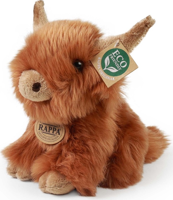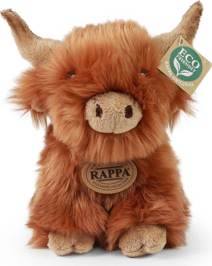 Plyšový skotský náhorní skot o velikosti 20 cm s typickými dlouhými rohy a hustou srstí je ručně ušitý z vysoce kvalitního, jemného plyše, a díky tomu vypadá jako živý. Tento plyšový kousek je ideálním dárkem pro všechny milovníky heboučkých plyšáků. Je součástí exkluzivní kolekce plyšových hraček značky RAPPA.