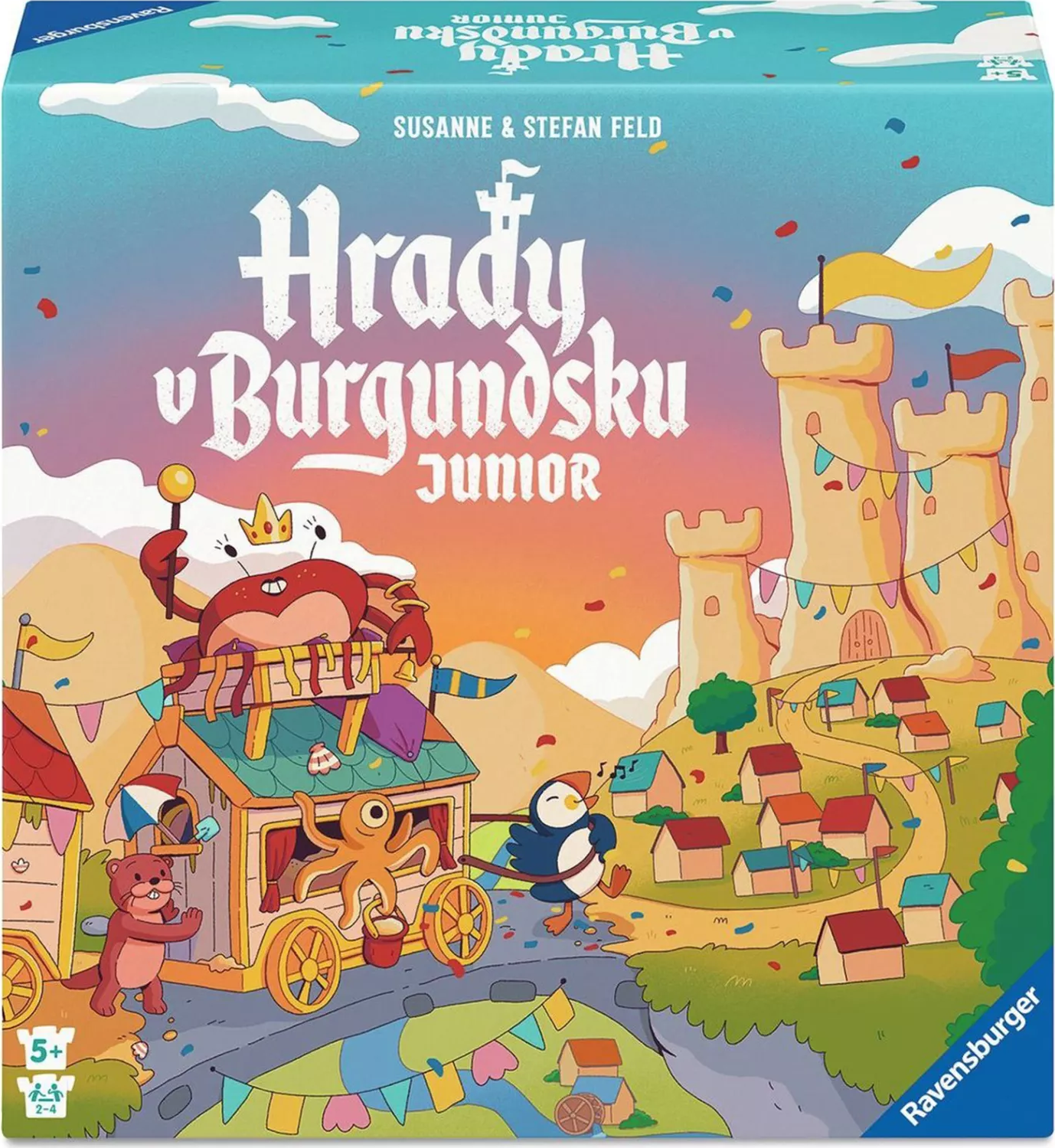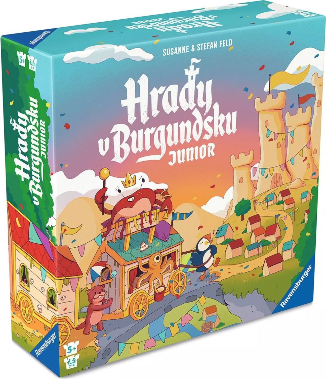 Krabí královna přijíždí do města a potřebuje pomoc s výzdobou své královské plážové party! V dětské verzi oblíbené hry Hrady v Burgundsku si děti od 5 let zahrají napínavou paměťovou hru, kde se pomocí kostek snaží najít správné dekorace, převézt je do své vesnice a získat co nejvíce bodů. Když nasbírají dvě dekorace stejné barvy, mohou se pokusit najít i zvířecího pomocníka královny – ale jen pokud si zapamatují, pod kterým pískovým hradem se skrývá.