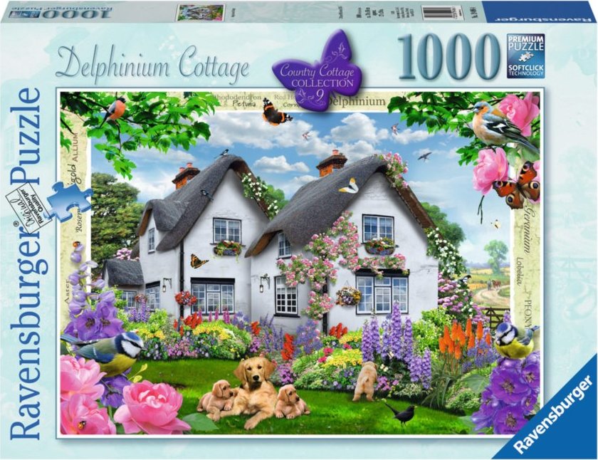 RAVENSBURGER Puzzle Domek se stračkou (Delphinium Cottage) 1000 dílků