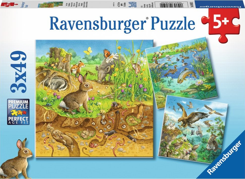 RAVENSBURGER Puzzle Zvířátka ve svých domovech 3x49 dílků